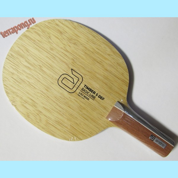Основание ракетки для настольного тенниса Andro Timber 5 DEF - это медленная защитная пятислойка с увеличенной лопастью. Несмотря на то, что толщина основания всего 4,8 мм, конструкция в целом достаточно жесткая, присутсвует гибкость, но не чрезмерная. Такие характеристики обеспечиваются жесткими внешними слоями лимбы и ореха. Основание легкое, с большим пятном стабильного отскока. По скорости Timber 5 DEF немного быстрее LKT Toxic 3, но медленнее Imperial Master Line DEF.